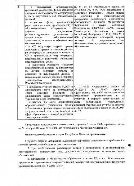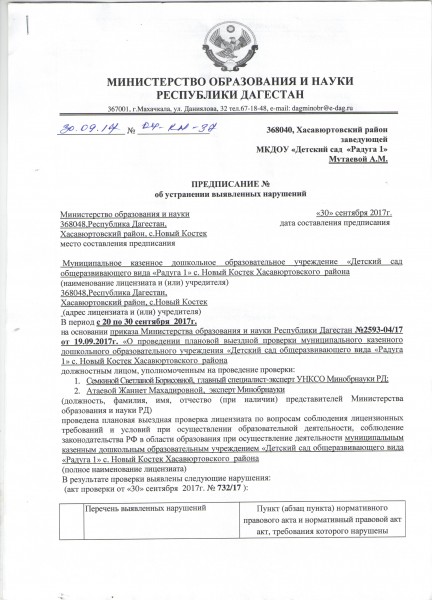 Предписания органов, осуществляющих государственный контроль (надзор) в сфере образования, отчеты об исполнении таких предписаний (при наличии)